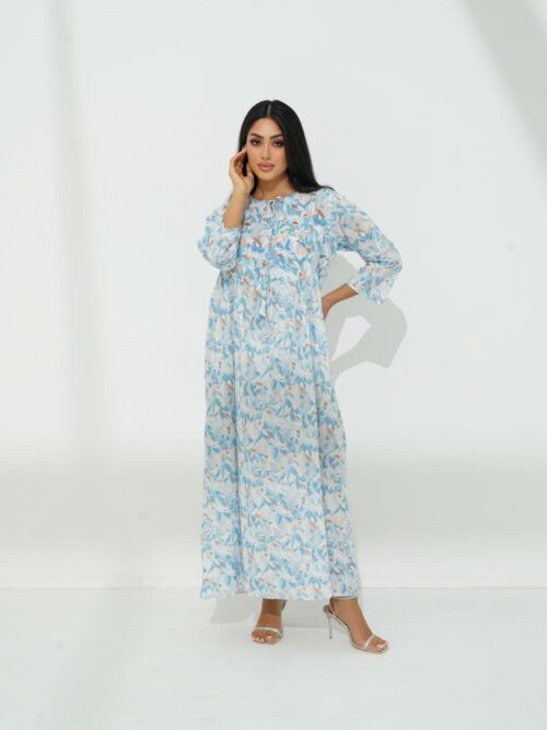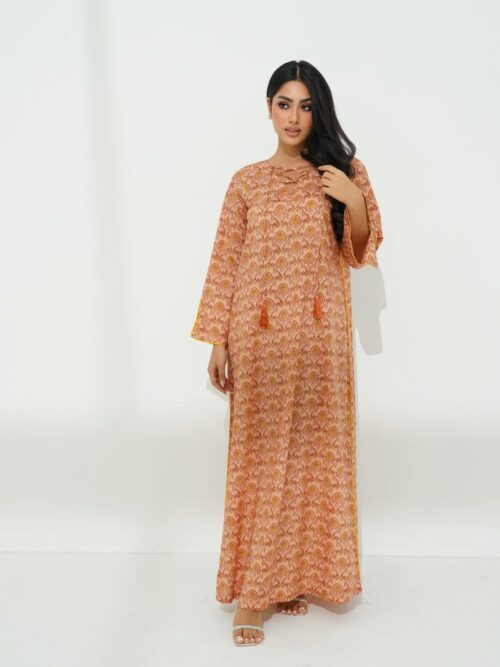 A graceful cotton dress adorned with delicate beadwork, perfect for any occasion while reflecting the spirit of Haq Al-Lailah and Ramadan.